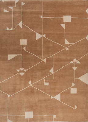 Sthir,Indian Tan/Linen White Hand Knotted Heriz Rugs - est en rupture de stock et sera expédié dès qu’il sera de retour en stock.