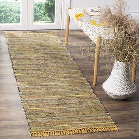 Handmade Boho Stripe Washable Yellow/Multi Cotton Rugs For Living Room