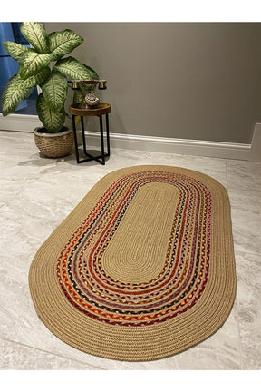 Rustic Hand Braided Jute Rug – Oval Area Carpet for Boho & Modern Spaces