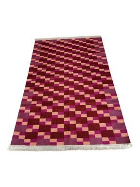 Handmade Purple Rust Color Woven Kitchen Natural Wool Kilim Dhurrie Rugs