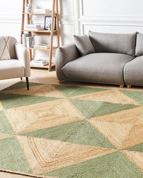Eco-Friendly Green and Beige Jute Rug – Handwoven Braided Carpet for Any Room