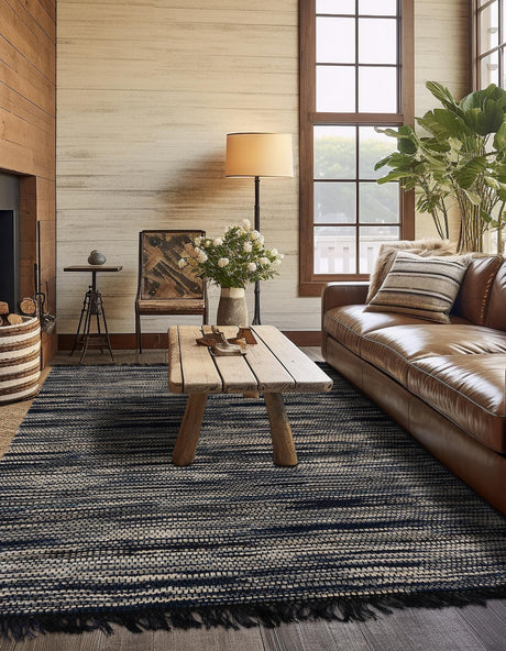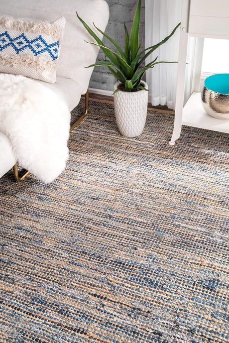 Denim Jute Rugs For Living Room ,Blue Hemp-Denim-Jute Cotton Mix Rugs