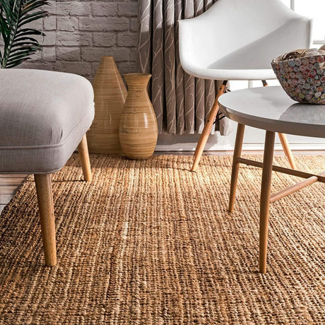 Hand Woven Ashli Handwoven Solid Jute Farmhouse, Boho Jute Carpets