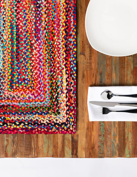下限 $49.86 USD単価 /利用不可Hand Woven Braided Chindi Multicolor Table Runner Rug, Cotton placemats