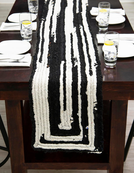 下限 $120.52 USD$179.31単価 /利用不可 Hand Braided Chindi Black & White Table Runner Rug