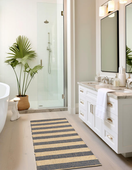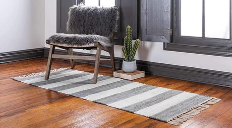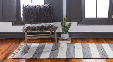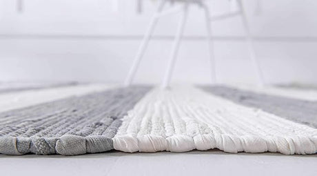 Chindi Rag Collection Hand Woven Striped Natural Fibers Gray Runner Rug