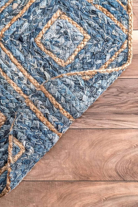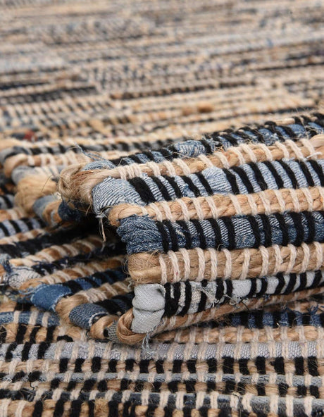 下限 $46.60 USD$62.90単価 /利用不可 Hand Woven Chindi Jute & Denim Cotton Table Runner Rug