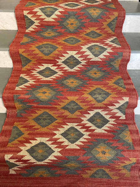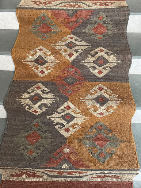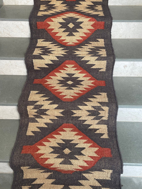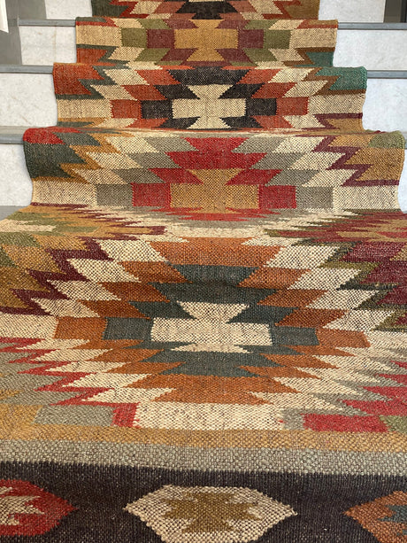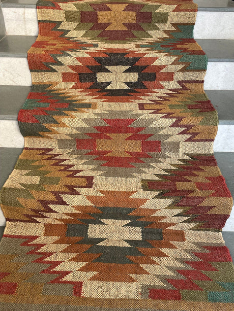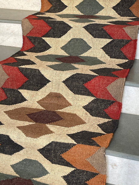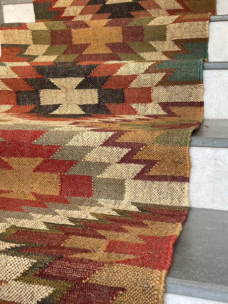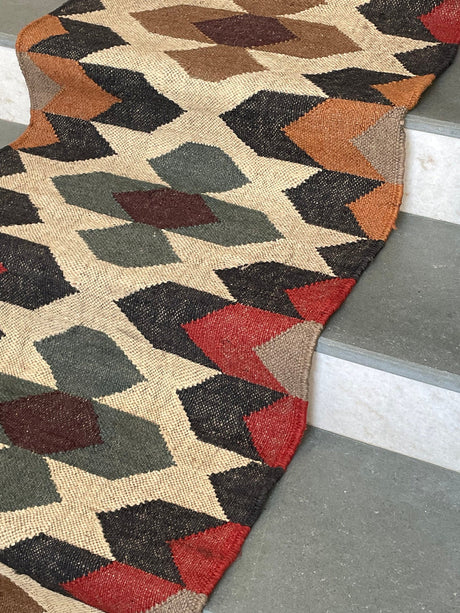 Geometric Kilim Jute Stair Runner – Traditional Meets Modern