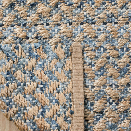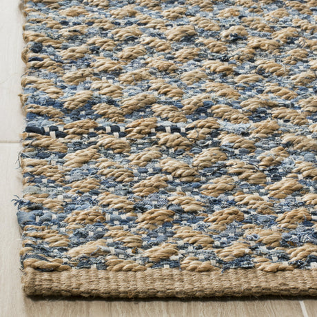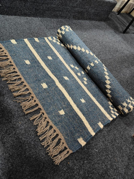 Indian Hand Woven Blue Hemp-Denim-Jute Cotton ,Recycled Denim Jute Rug