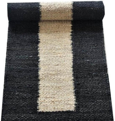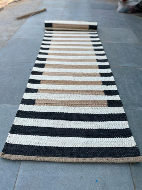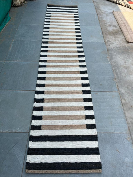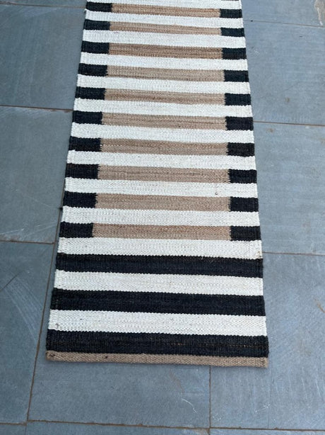 Handwoven Black Wool And Jute Runner/Handmade Kilim Runner Rug For Stair Decor