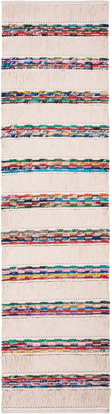 Chindi Rag Collection Hand Woven Striped Natural Fibers Gray Runner Rug