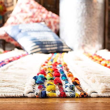 Natura Collection Hand-woven Cotton Runner, Ivory/Red