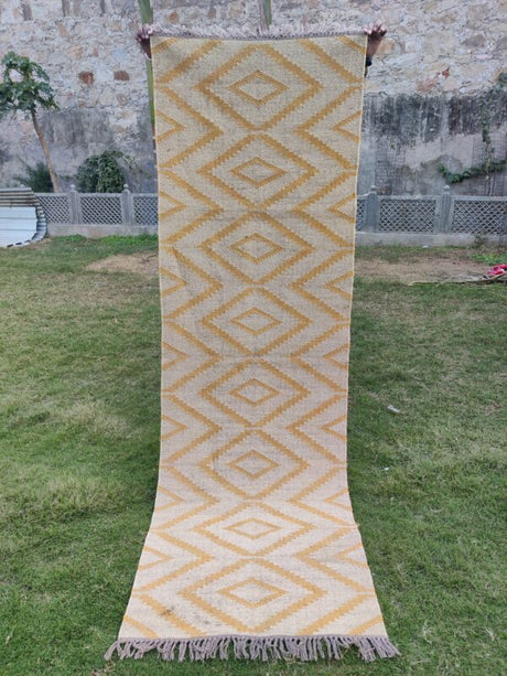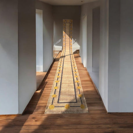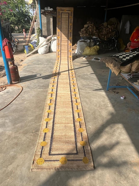 Yellow Dote Stair Jute Runner, handmade jute runner, outdoor runner, hallway runner rug