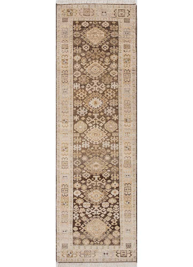 Savan Cocoa Brown Hand Knotted Decorative Stair Runners Rugs - ...は取り寄せ中で入荷次第発送します。